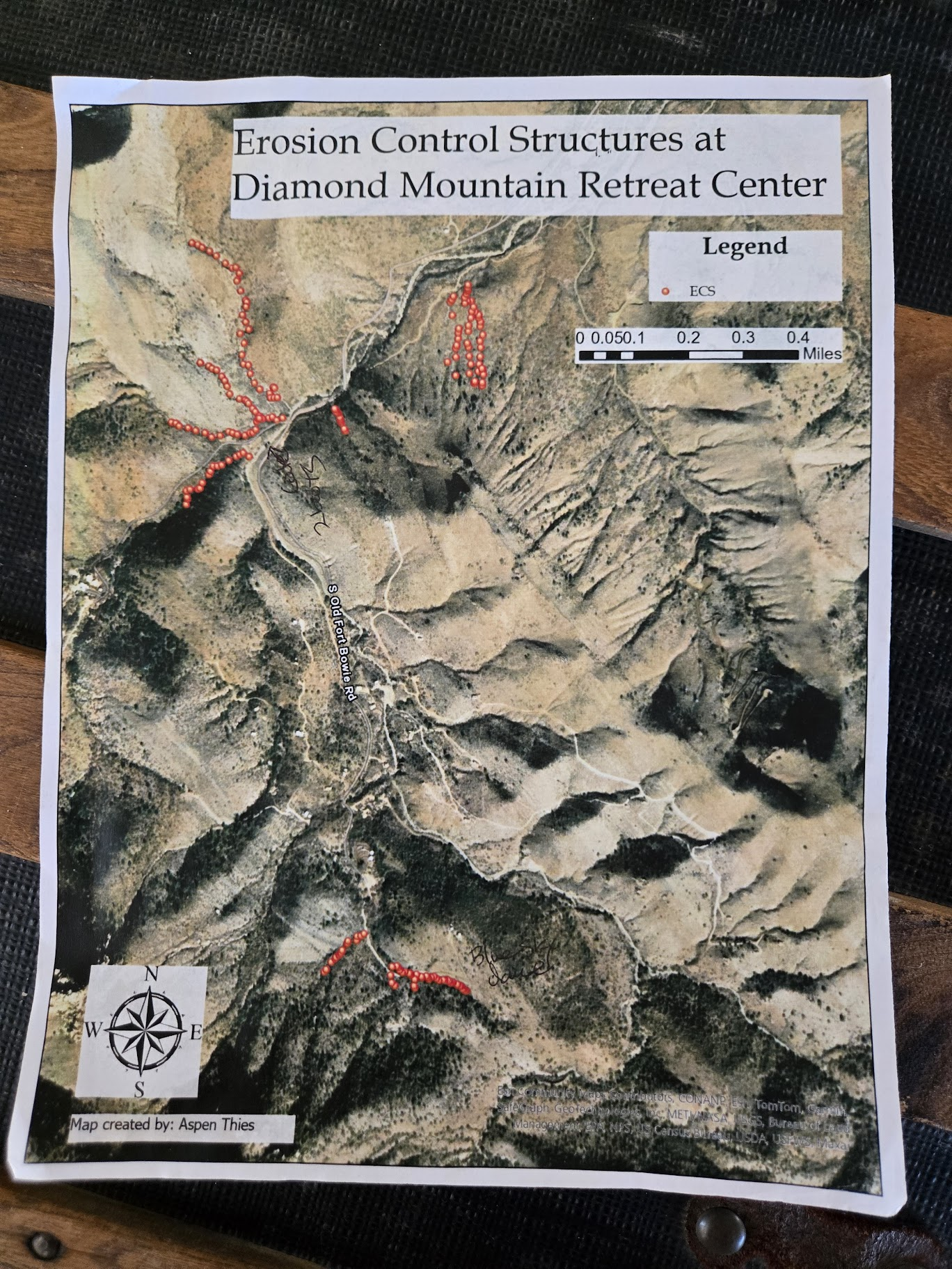 The primary purpose and desired outcome of this Plan are to guide installation of at least 50 rock erosion control structures for Borderlands Restoration Network’s (BRN) 2023, 2024, and 2025 summer youth program, Borderlands Earth Care Youth (BECY), along with workshops hosted jointly by BRN and Diamond Mountain Retreat Center (DMRC). The work described below will occur in the upper watershed of private land at DMRC, the project’s host and steward of 1,000 acres in the Dos Cabezas Mountains 120 miles east of Tucson, Arizona.